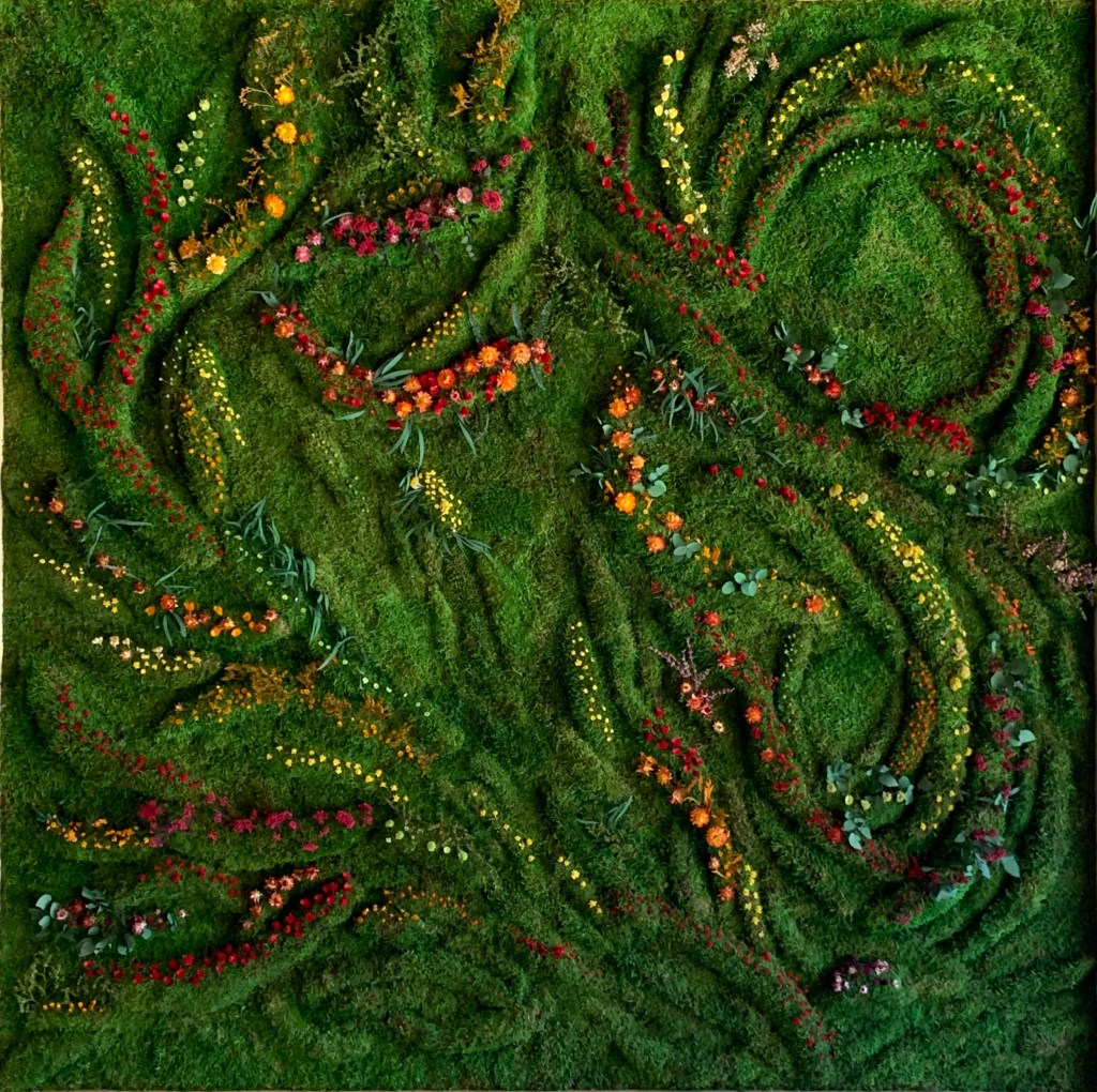 Hace tres años, en la temporada de los Festivales de diseño y arquitectura, presenté un paisaje multisensorial cuyo título era SINESTESIA, fruto de una larga colaboración con monamour natural design. La pieza entre arte y naturaleza sigue allí, en el taller, con sus múltiples escalas simultáneas y los recorridos de color inspirados por la música.