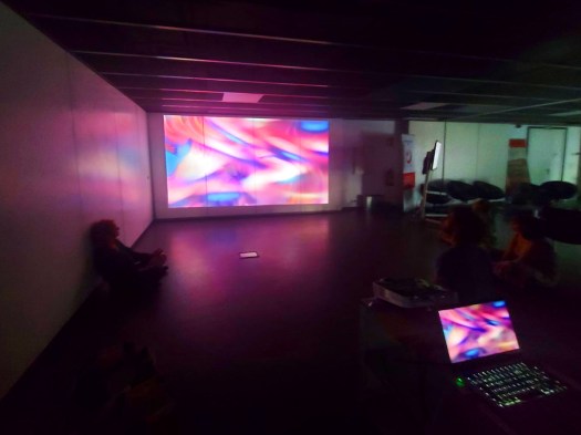The video is also part of another parallel investigation that uses colour as a tool for constructing space. The videos and projections are self-sufficient works; however, the artist uses them as tools to create sensitive spaces (environments that combine real and virtual elements) where different levels of well-being can be experienced and where large-scale chromatic narratives can be interacted with, erasing the distance between the viewer and the artwork, and transforming the perception of colour into a personalised experience.