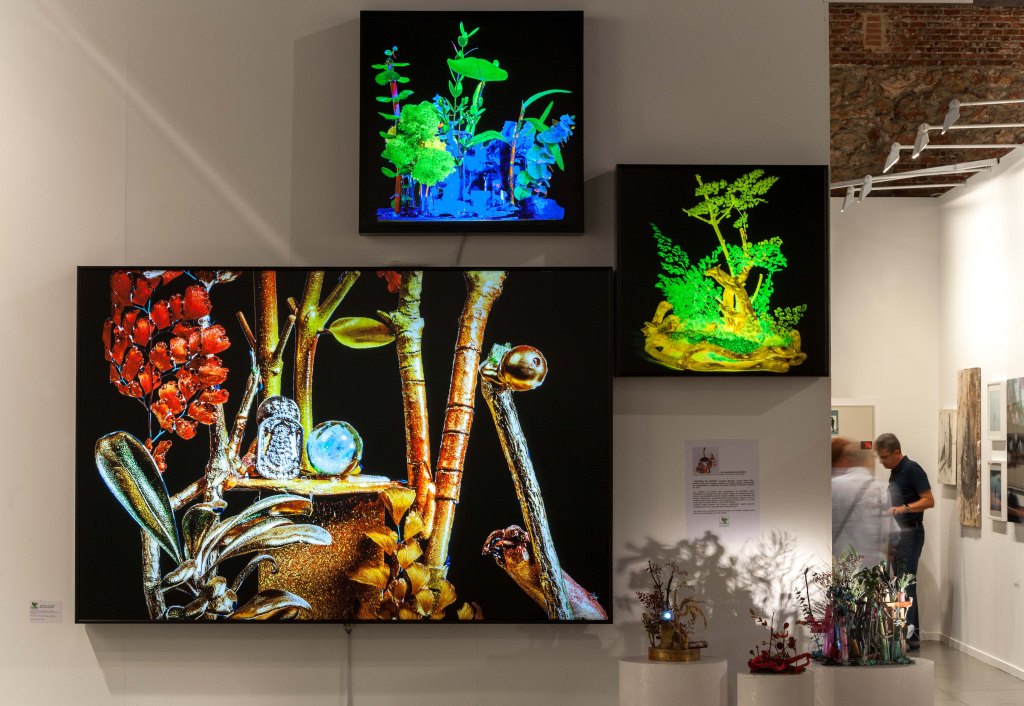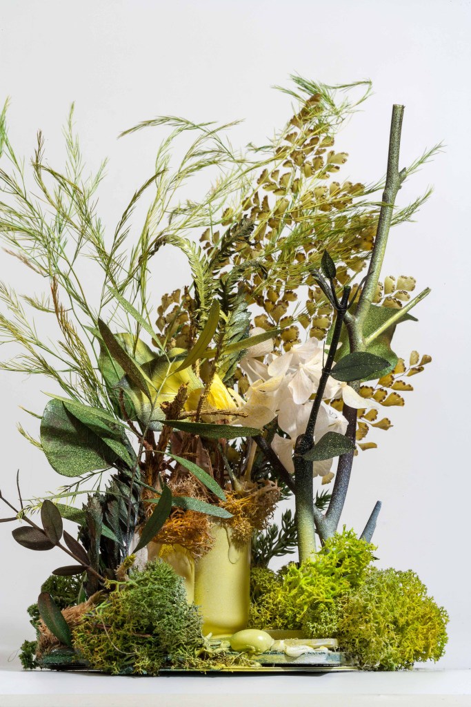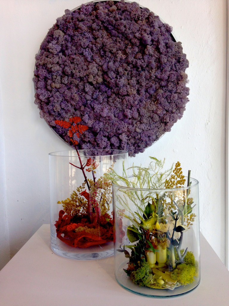 jardínes oníricos de pequeño tamaño con plantas naturales estabilizadas sin mantenimiento y materiales reciclados (cristales de Murano, alambre, etc. etc.).